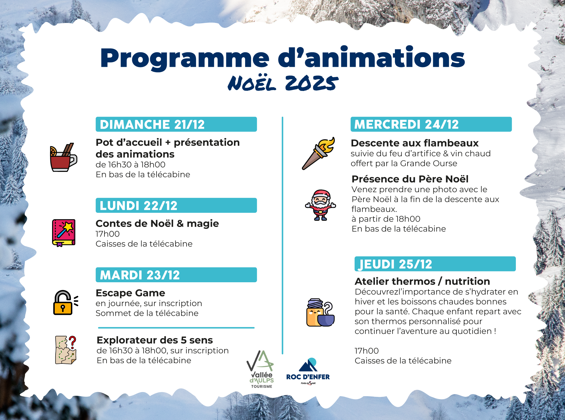 Le domaine skiable du Roc d’Enfer ouvrira ses portes le samedi 20 décembre 2025 pour la saison. Si les conditions ...