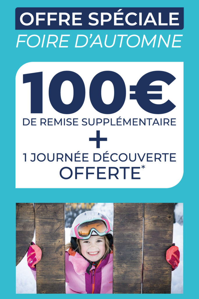 Bénéficiez de 100€ de remise supplémentaire + 1 journée découverte offerte, pour tout achat simultané d’un forfait adulte + un forfait enfant au tarif pré-vente.