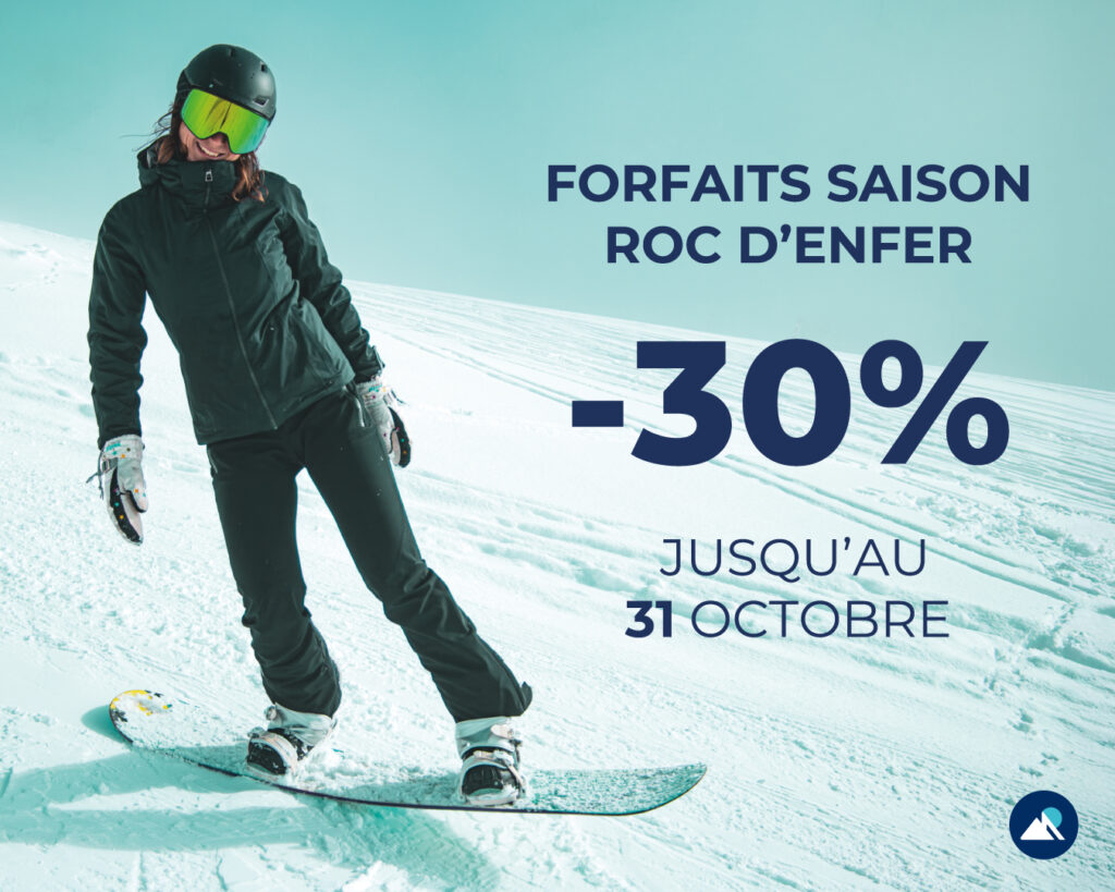 Jusqu’au 31 octobre, profitez de 30% de réduction sur l’achat de votre forfait saison Roc d’Enfer.